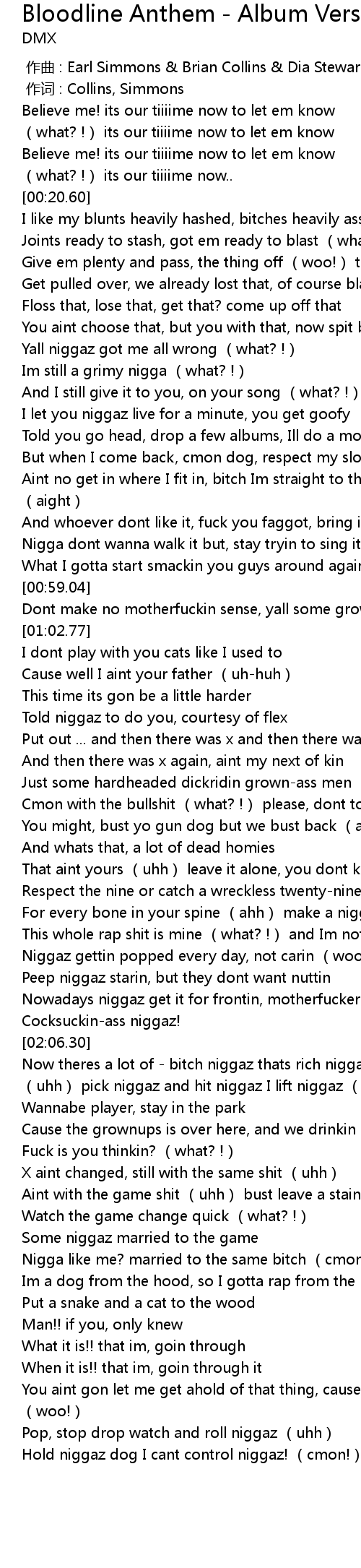 | [03:05.15] | Hold niggaz dog I cant control niggaz! (cmon!) |