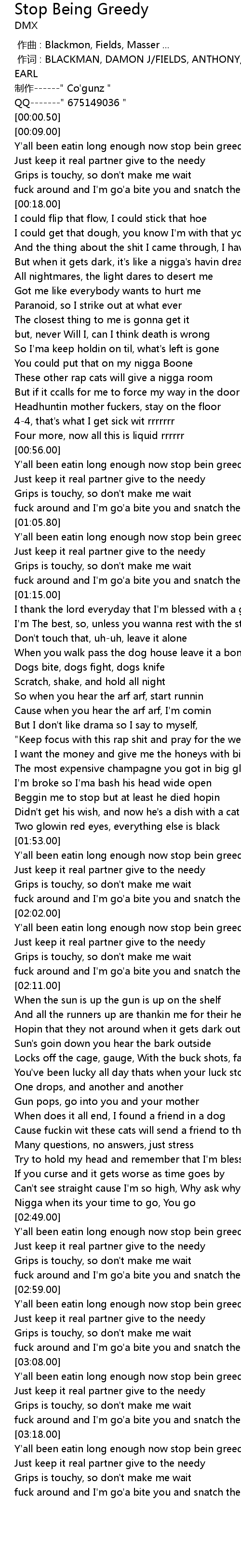 | [03:18.63] | Y'all been eatin long enough now stop bein greedy |