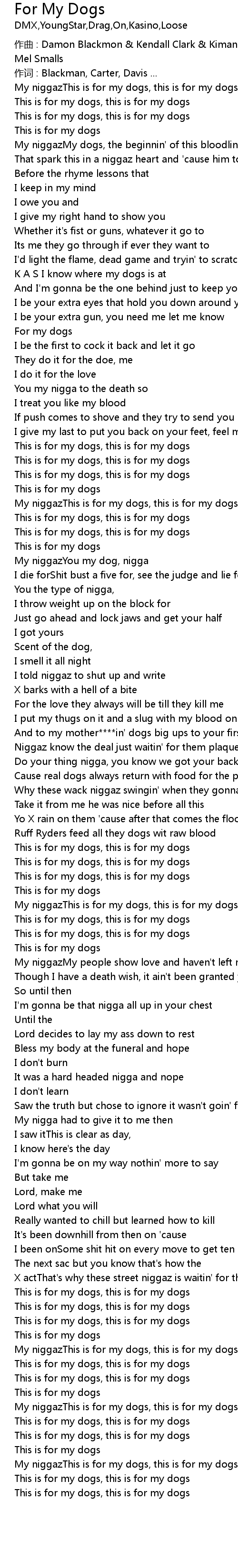 | 作曲 : Damon Blackmon & Kendall Clark & Kimani Davis & DMX & Dennis Joyner & Mel Smalls | |