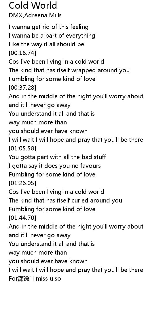 | [00:19.55] | Cos I've been living in a cold world |