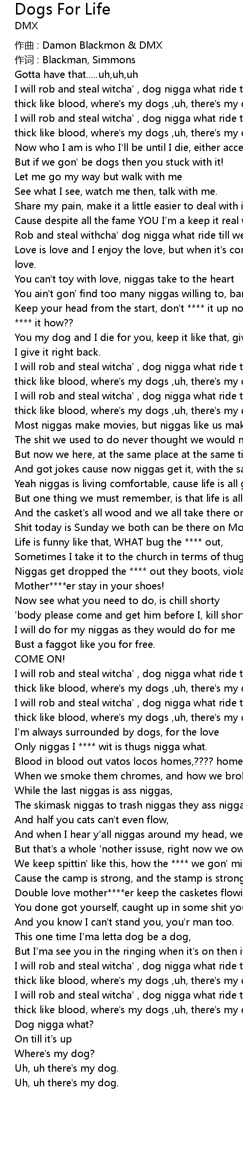 | I will rob and steal witcha' , dog nigga what ride till we die, on till it's up thick like blood, where's my dogs ,uh, there's my dogs | |