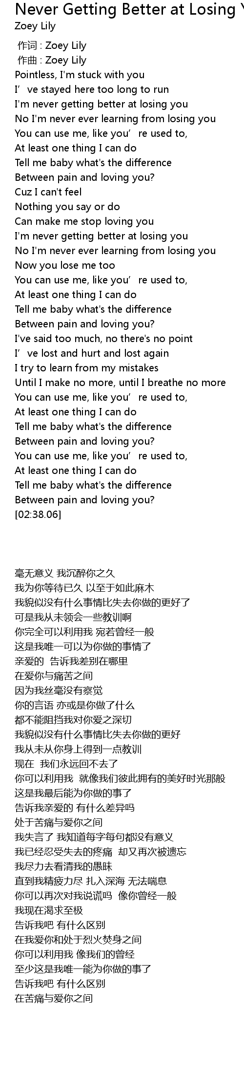 | [01:51.54] | I' ve lost and hurt and lost again |