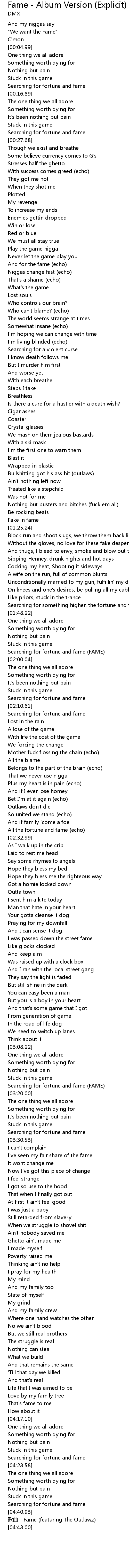 | [04:43.58] | 歌曲 - Fame (featuring The Outlawz) |