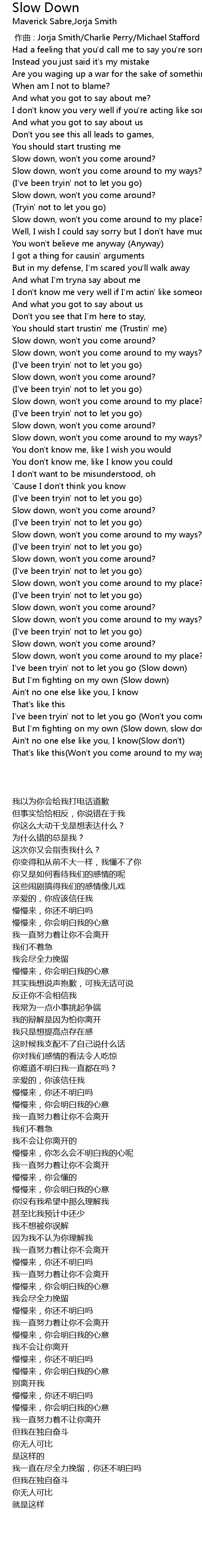 | [03:07.34] | I' ve been tryin' not to let you go Slow down |