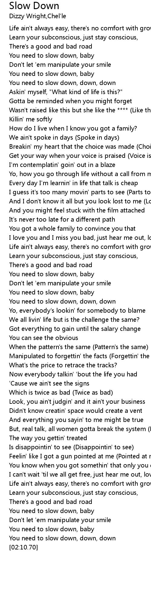 You need to slow down, down, down |