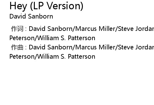 | [00:00.000] | zuò cí : David Sanborn Marcus Miller Steve Jordan Ricky Peterson William S. Patterson |