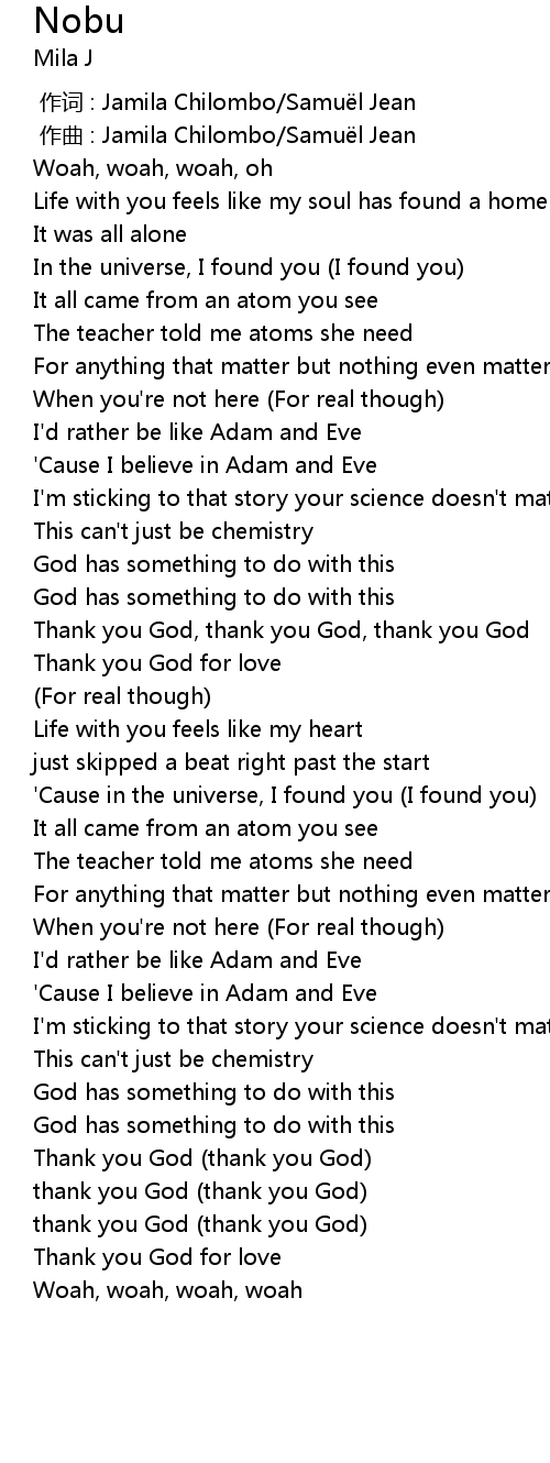 | [01:02.60] | Thank you God, thank you God, thank you God |