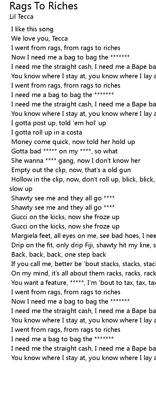 I went from rags, from rags to riches |