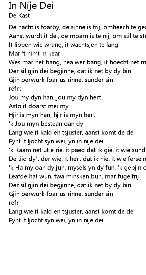 Aanst wurdt it dei, de moarn is te nij, om stil te stean |