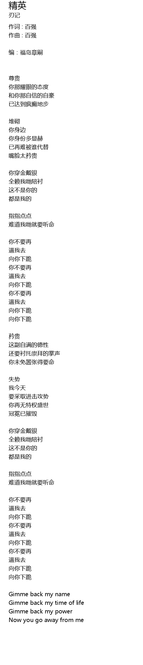 | 作词 : 百强 | |