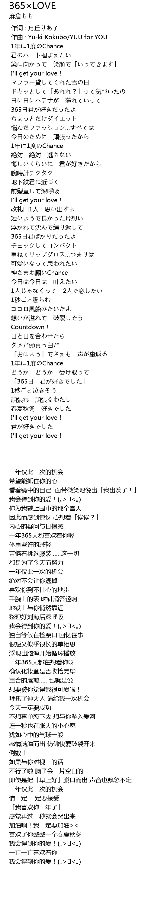 | [00:43.088] | 365日君が好きだったよ |