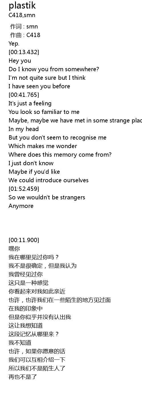 | [02:03.364] | So we wouldn't be strangers |