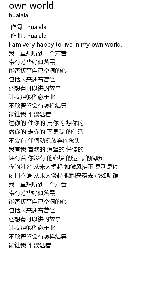 | [00:00.37] | I am very happy to live in my own world. |
