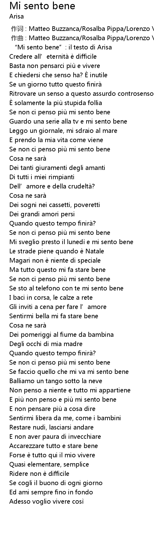 | [00:00.000] | " Mi sento bene": il testo di Arisa |