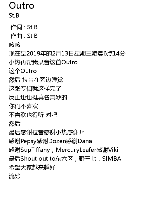 | [00:08.610] | 小热再帮我录音这首Outro |