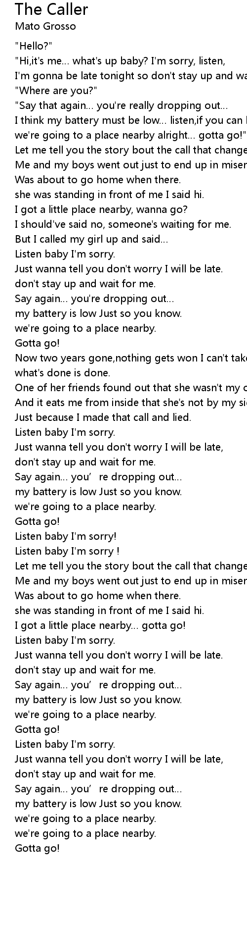 | [00:02.44] | "Hi,it's me… what's up baby? I'm sorry, listen, |