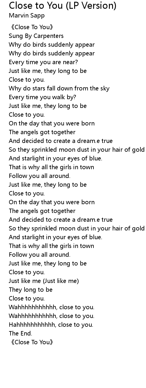 | 《Close To You》 |