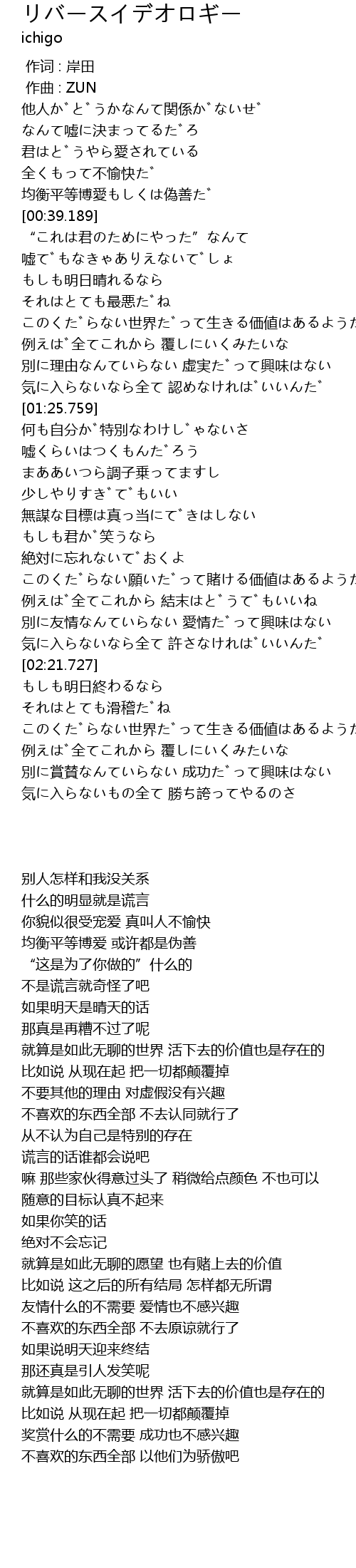 | [02:17.007] | 気に入らないなら全て 許さなければいいんだ |