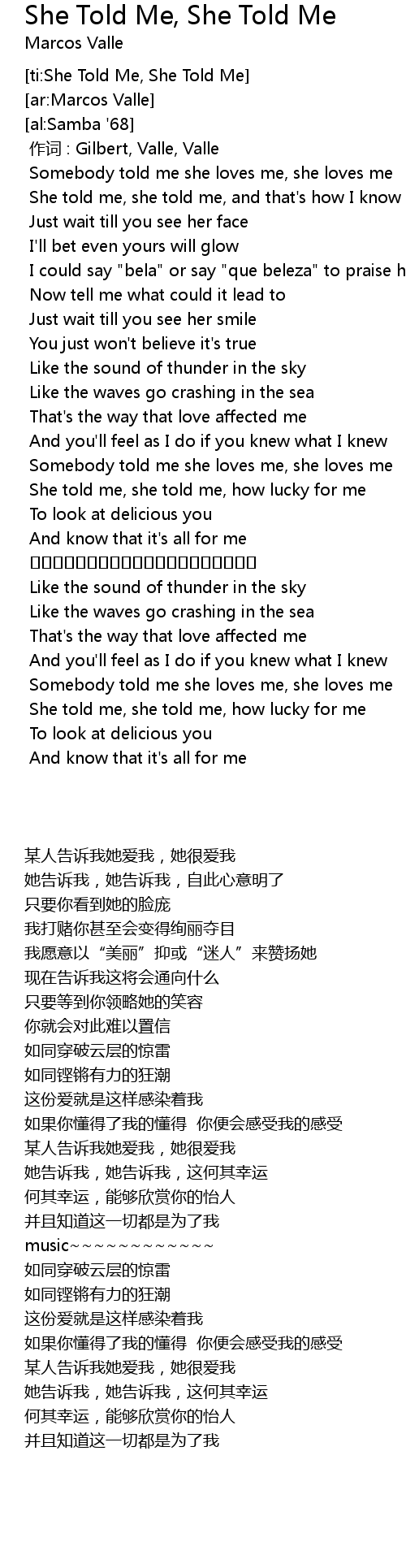 | [ti:She Told Me, She Told Me] | |