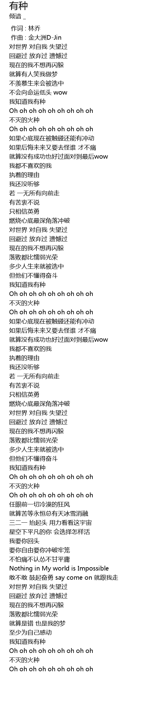 | [04:22.519] | bù miè de huǒ zhǒng |