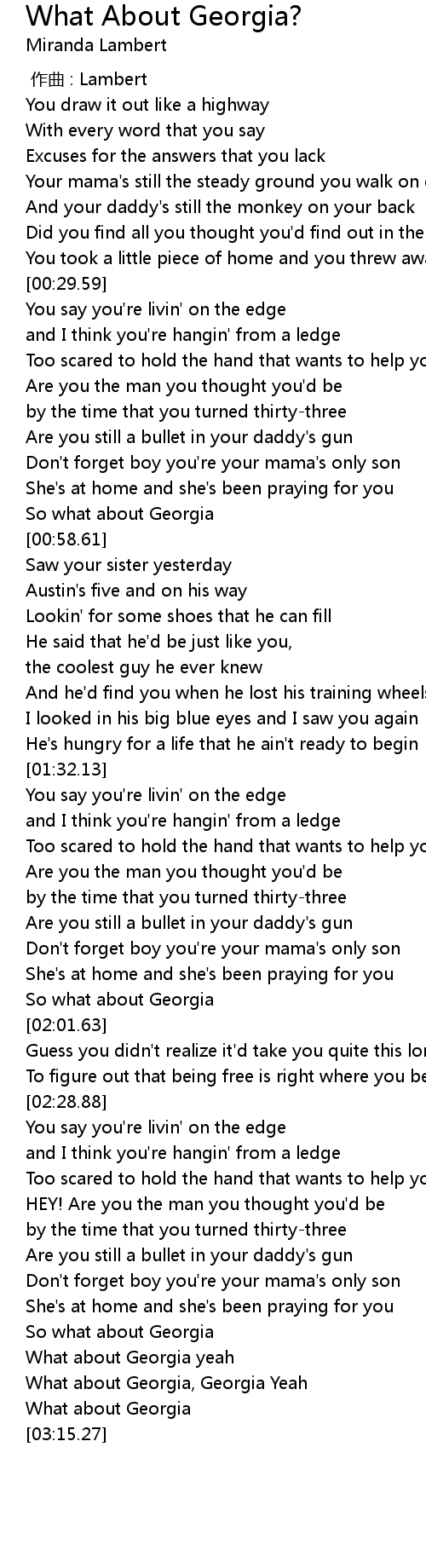 | [03:04.59] | What about Georgia, Georgia Yeah |