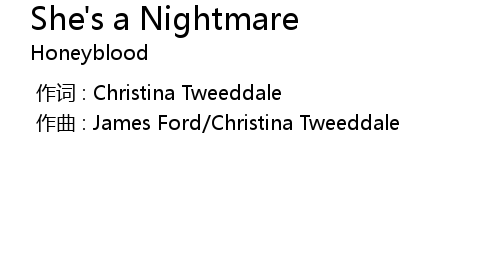 | [00:00.000] | 作曲 : James Ford/Christina Tweeddale |