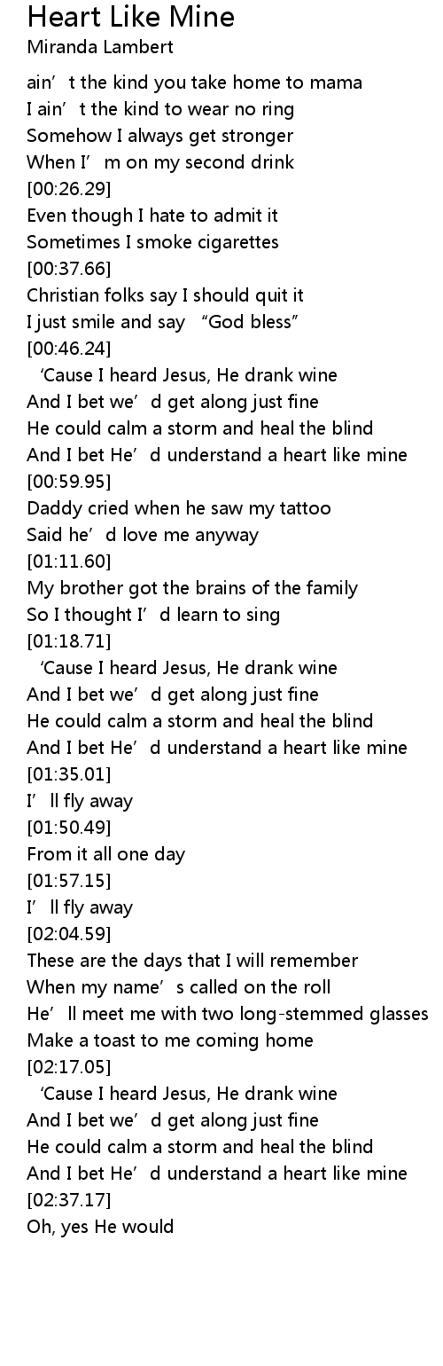 | [00:56.72] | And I bet He' d understand a heart like mine |
