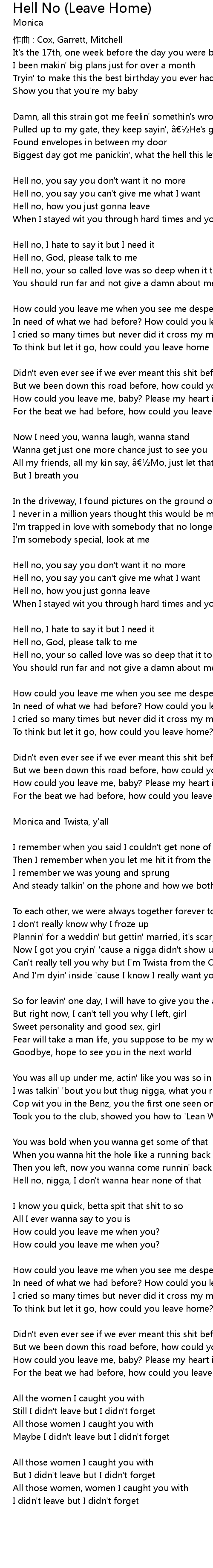 | But we been down this road before, how could you leave home | |