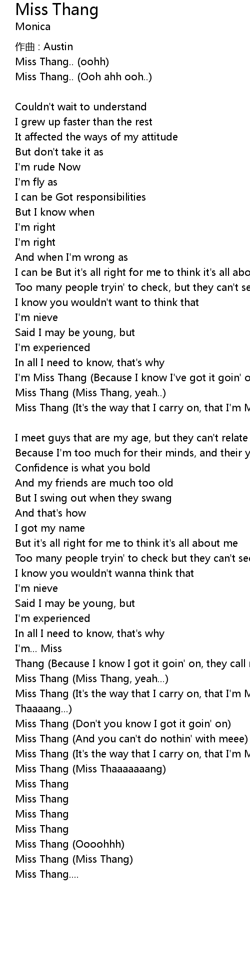 | Miss Thang (It's the way that I carry on, that I'm Miss Thang Miss Thang (Miss Thaaaang...) | |