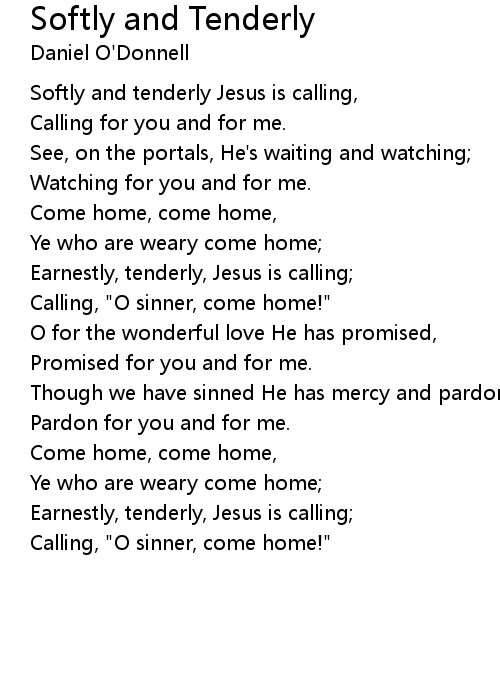 Softly and tenderly Jesus is calling, |