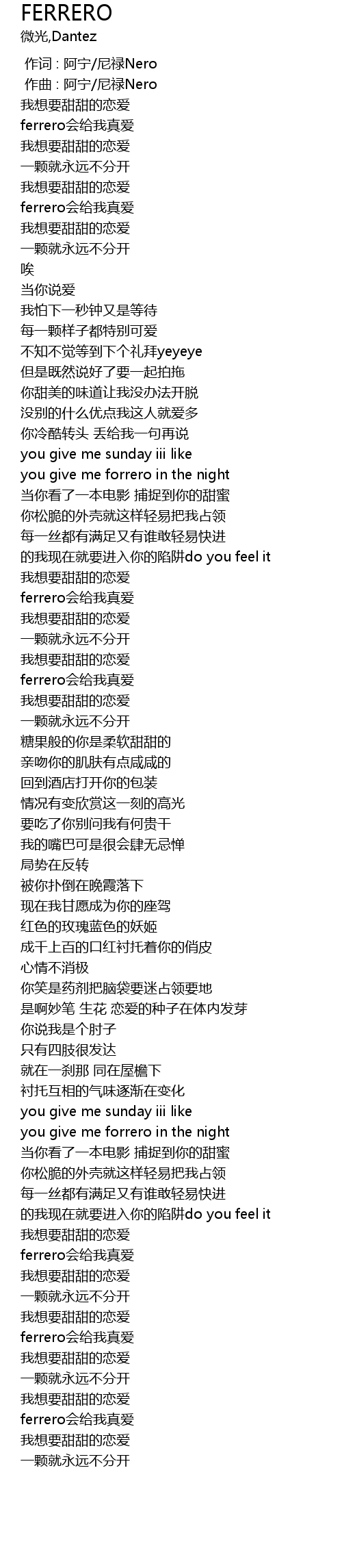 | [00:32.692] | ferrero huì gěi wǒ zhēn ài |