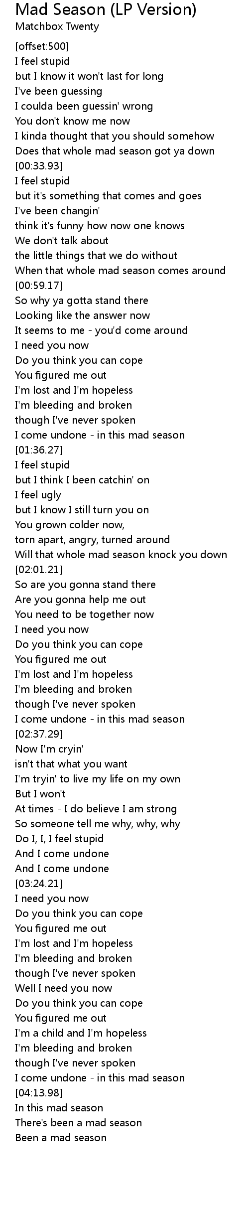 Does that whole mad season got ya down |