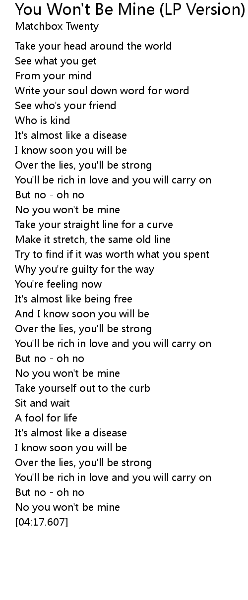No you won't be mine |