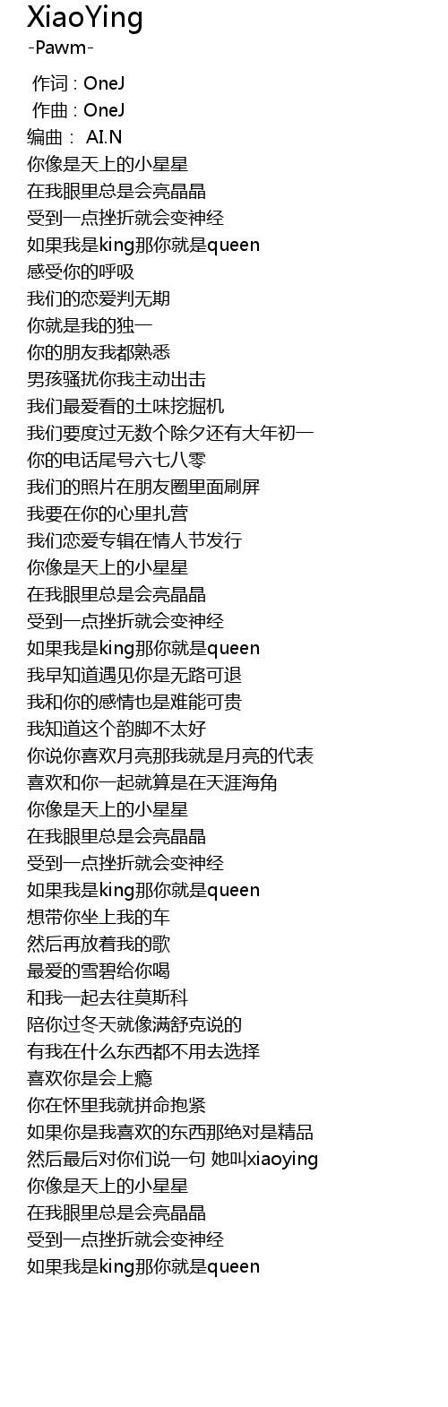 | [00:25.664] | 如果我是king那你就是queen |