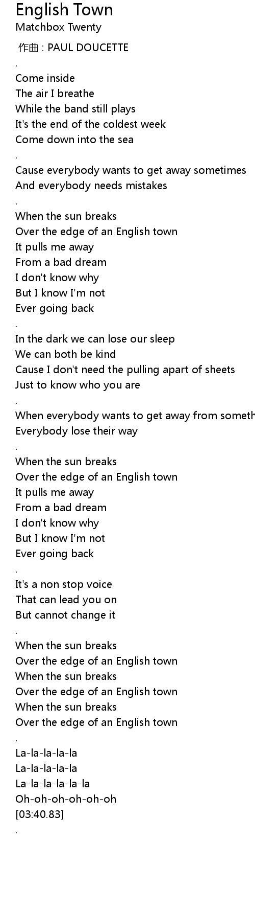 | [03:26.93] | Over the edge of an English town |