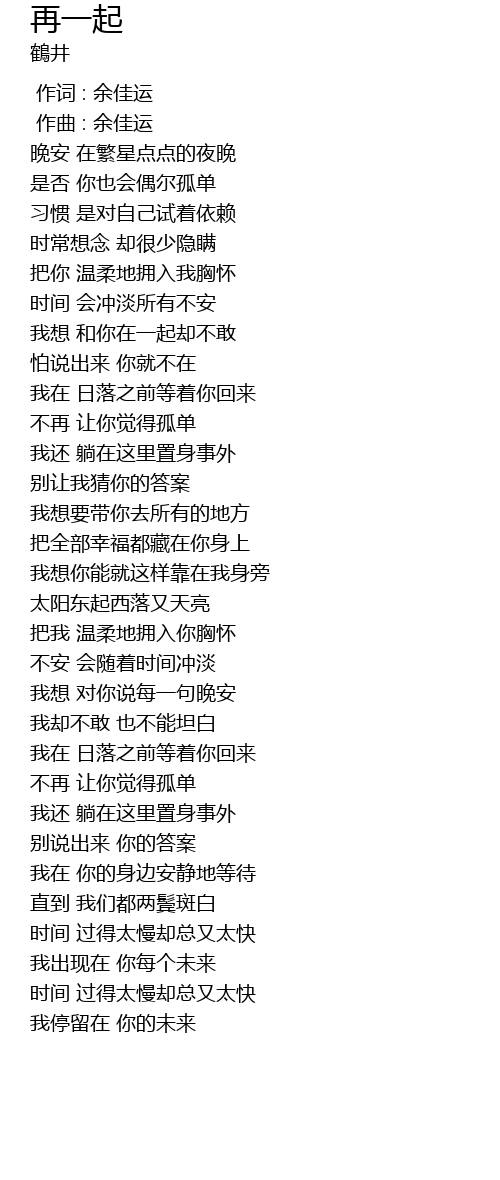| [00:00.000] | 作词 : 余佳运 |