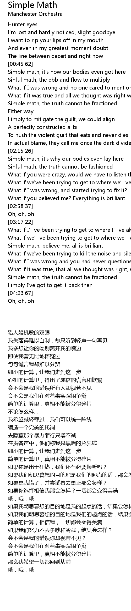 | [04:10.73] | Simple math, the truth cannot be fractioned |