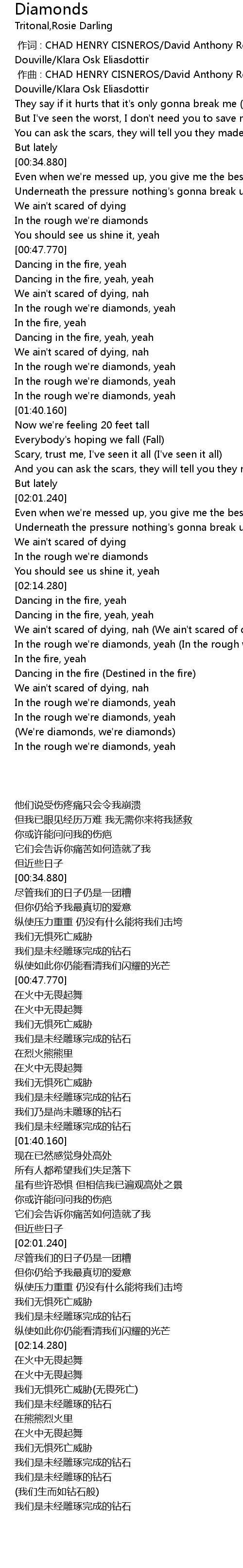 | [02:25.350] | In the rough we' re diamonds, yeah In the rough we' re diamonds |