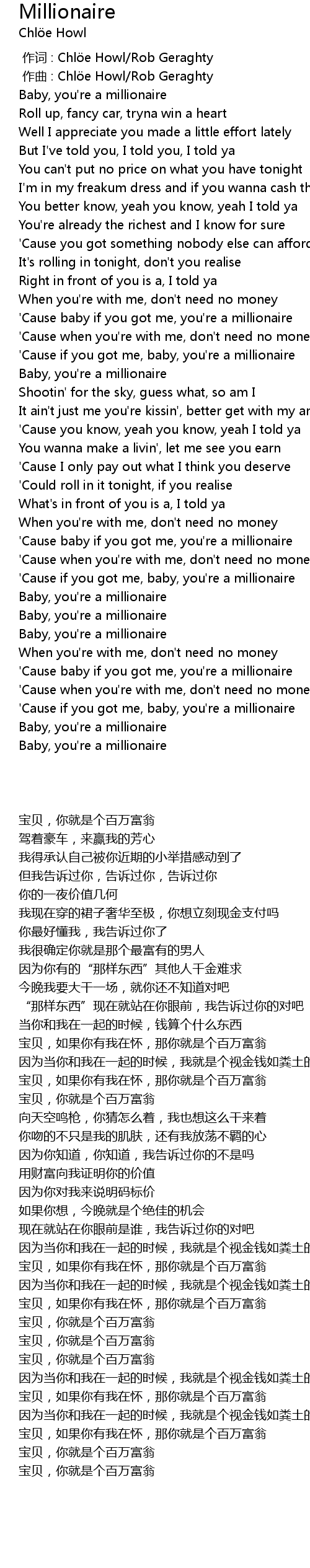 | [02:26.31] | ' Cause if you got me, baby, you' re a millionaire |