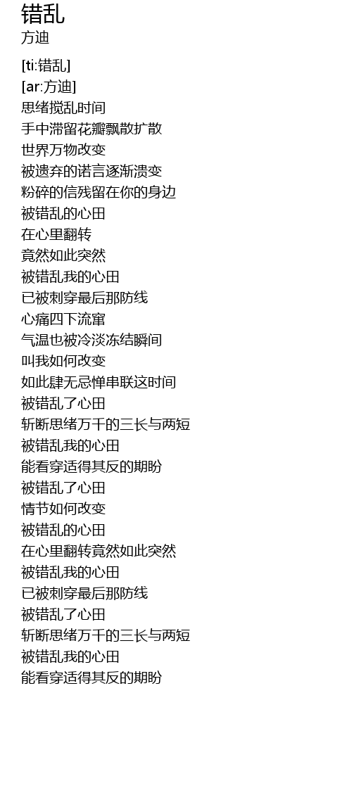 | [02:23.629] | 被错乱了心田 |
