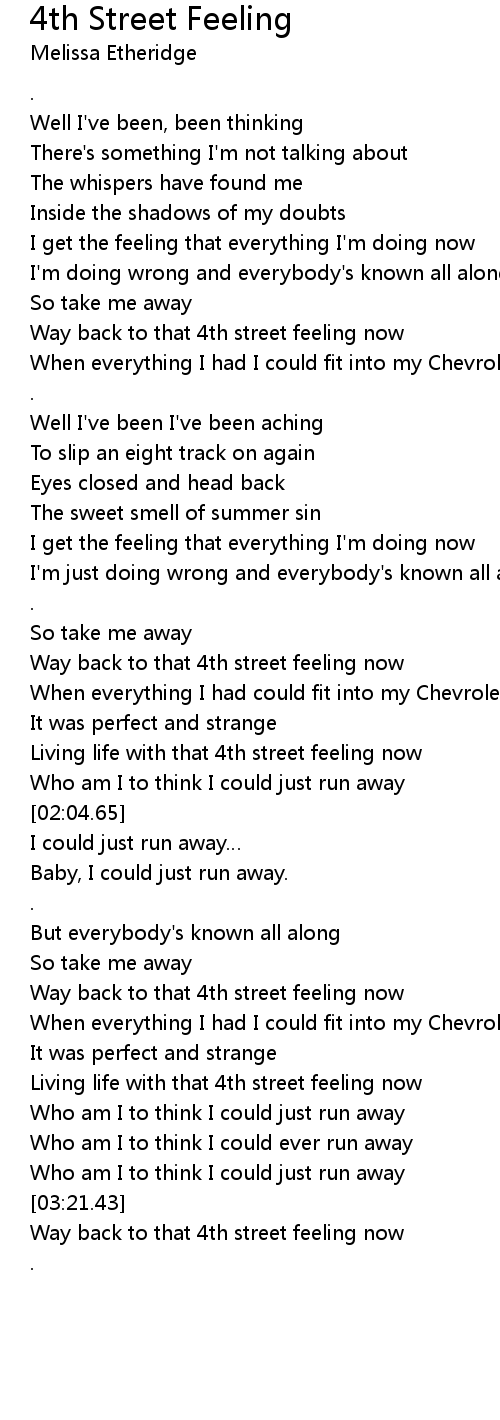 | [02:54.38] | Living life with that 4th street feeling now |