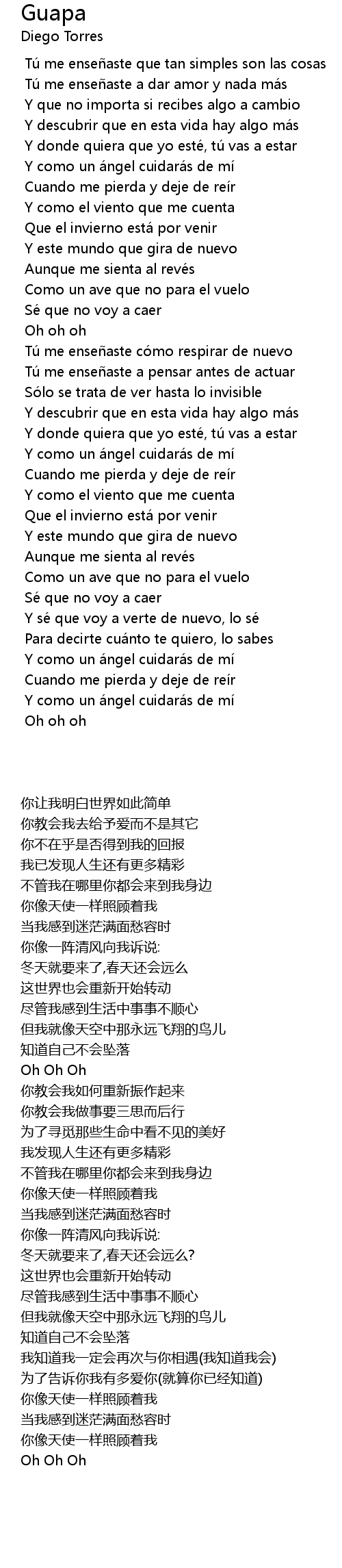 | [00:40.924] | Y como un ángel cuidarás de mí |