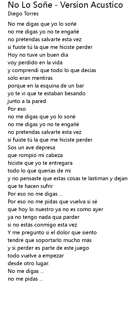 | Song | No Lo Soñe - Version Acustico |