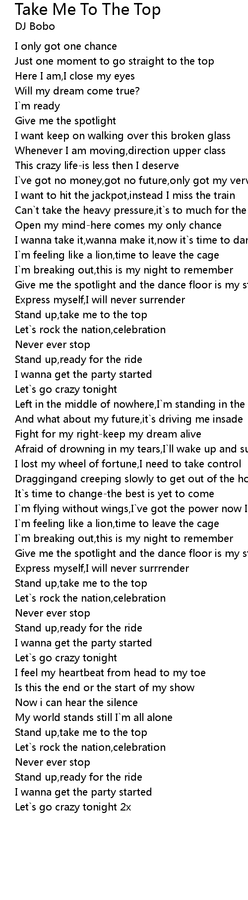| I wanna take it,wanna make it,now it`s time to dance | |