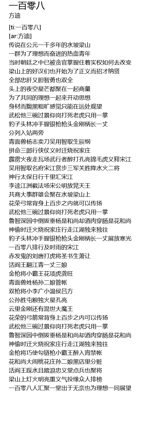 | [02:55.433] | yi bai ling ba pai hang ji shi yu de song jiang |