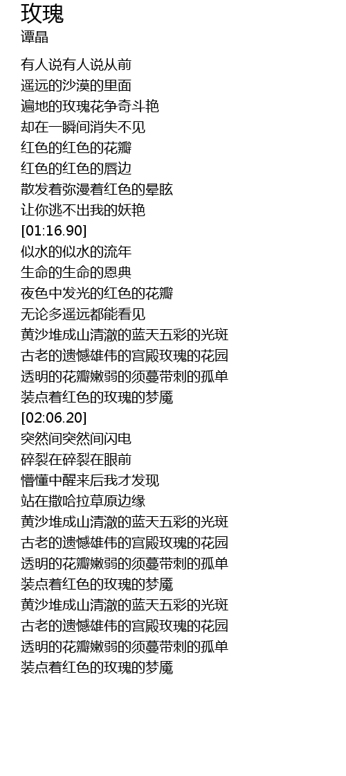 | [01:47.82] | 古老的遗憾雄伟的宫殿玫瑰的花园 |