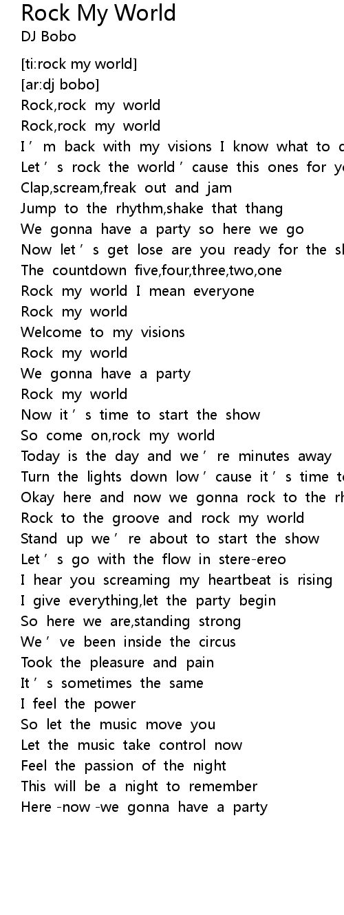 | [00:21.975] | Let ’s rock the world ’cause this ones for you |
