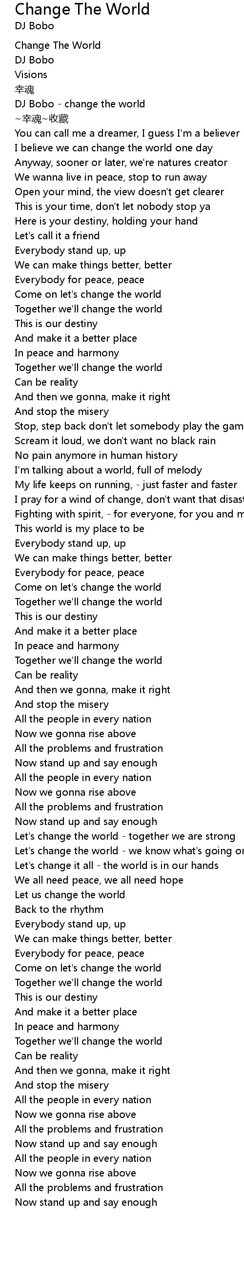 | [02:32.56] | Let's change it all - the world is in our hands |