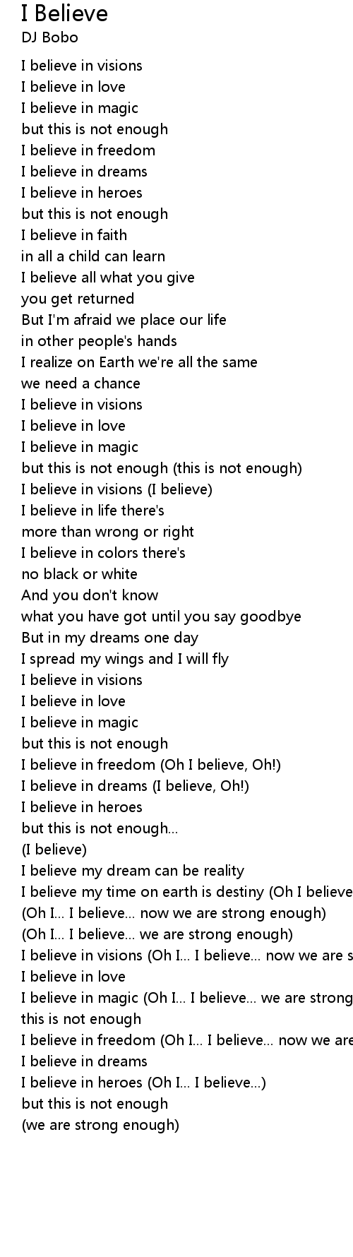 I believe in visions (Oh I... I believe... now we are strong enough) |