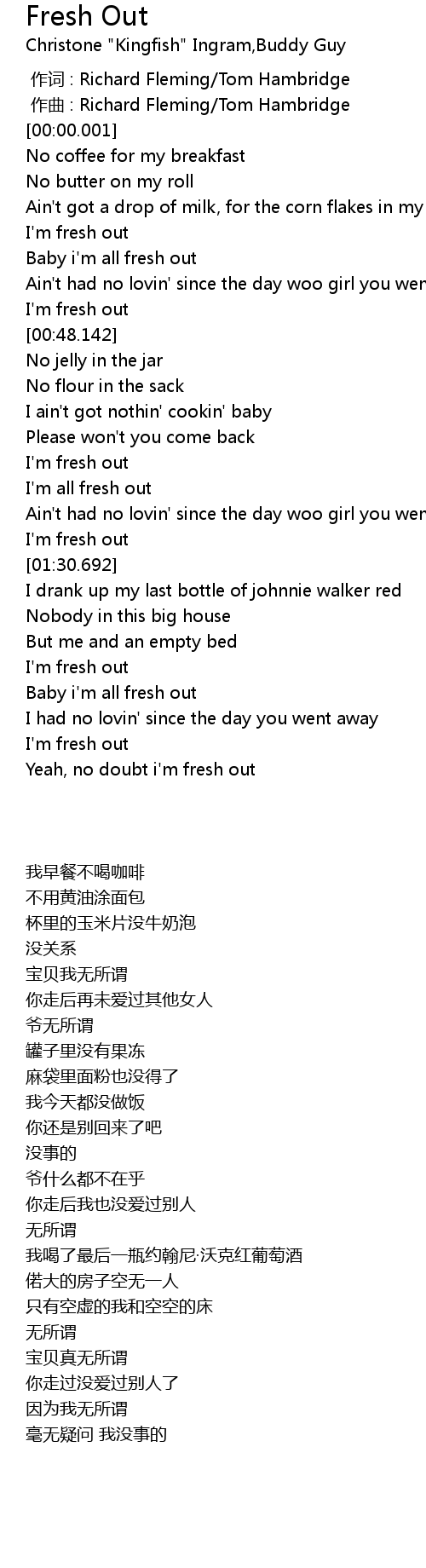 | [03:31.211] | Yeah, no doubt i' m fresh out |